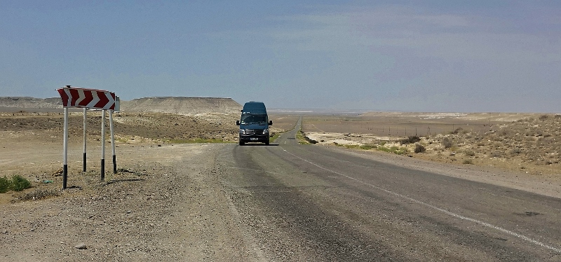 Totenstadt bei Akschukyr Die P 116 in Richtung Fort Shevchenko ist gut zu befahren, jetzt fehlt uns zu unserem Glück nur noch ein schöner Strand.