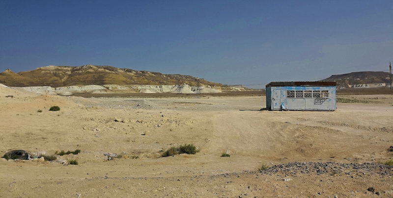 Nachdem wir aus dem Einflussbereich des Amurdarya herauskommen, der einen großen Landstrich begrünt, tauchen wir wieder ein in trostlose und extrem heiße Wüstenlandschaft. Am Abend stoppen wir bei einem heruntergekommenen Rasthof in Josliq, es ist der einzige Schattenplatz, den wir weit und breit finden können.