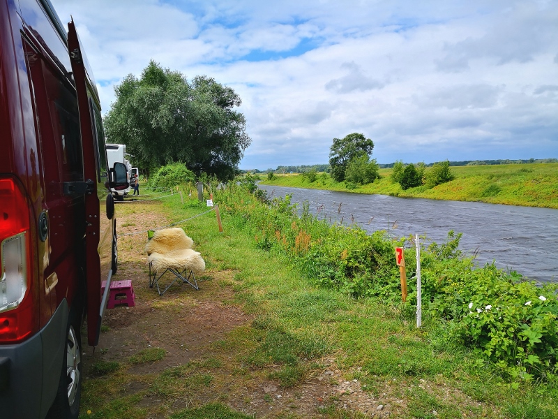 Zuhause auf unserem schönen Zeltplatz sitzen wir noch lange am Ufer der Elbe.